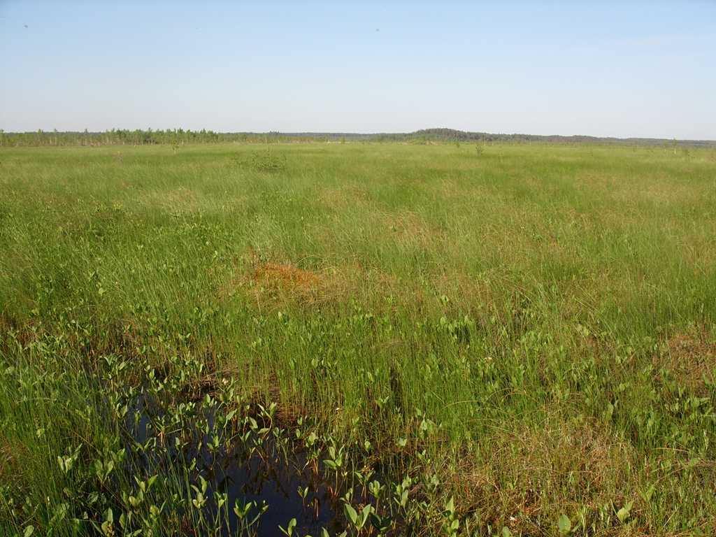 Верхавыя балоты – 50%, лясы (пераважна сасновыя) – 45%, іншыя землі – 5%.