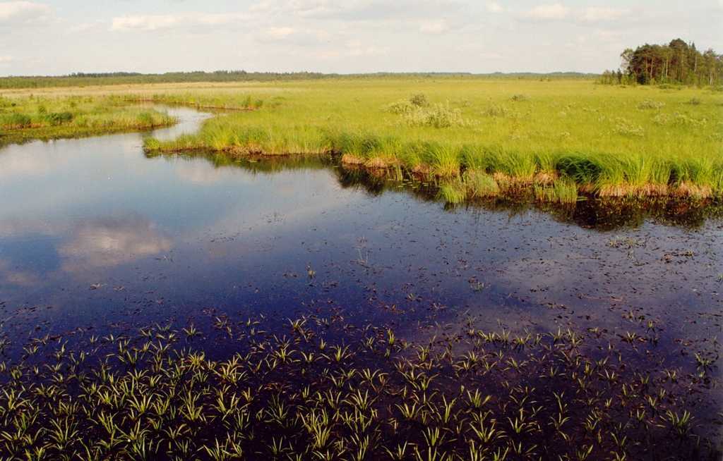 Балоты верхавыя – 45%, лясы – 45%, азёры – 5%, іншыя землі – 5 %.