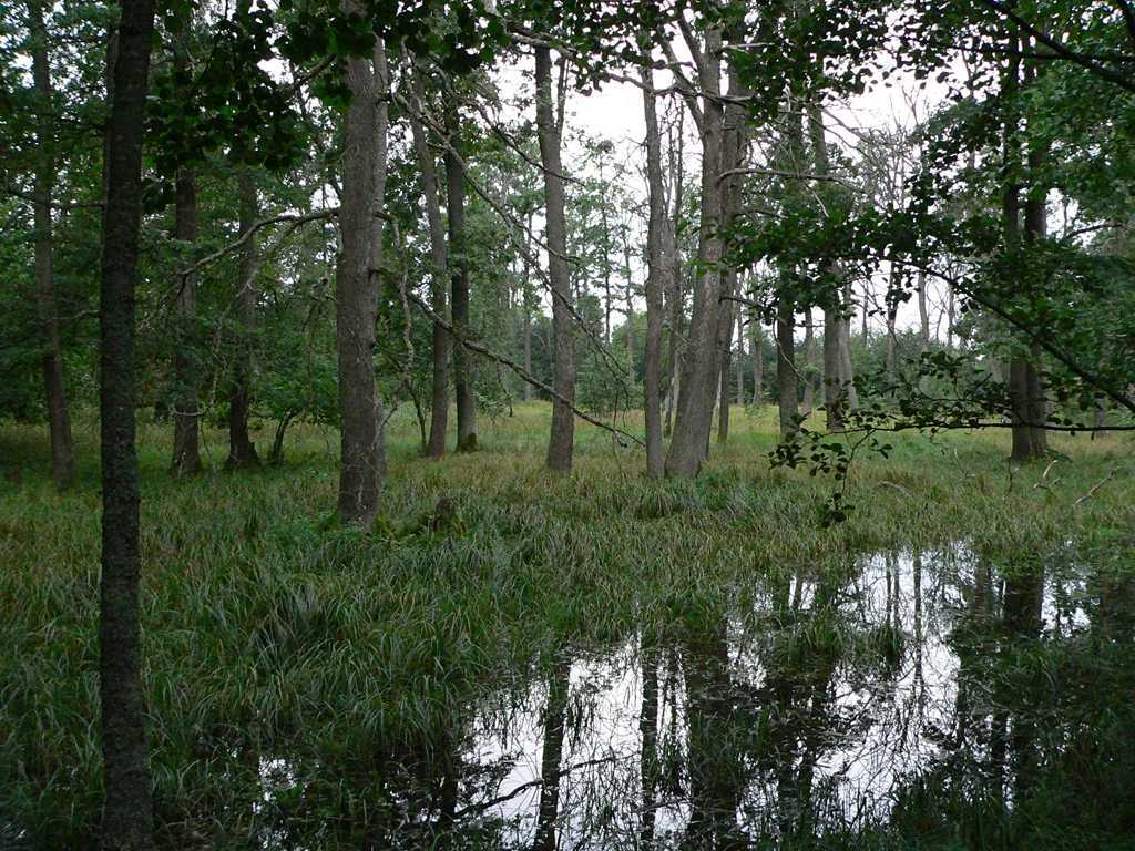 Большая частка балот нацыянальнага парка пакрыта хвойнікамі, хаця і даволі значная іх плошча (каля 15%) застаецца бязлеснай. Бліжэй да поймы верхавыя і пераходныя балоты змяняюцца нізіннымі; яны, ў сваю чаргу – паласой вельмі забалочаных, часам непраходных, алешнікаў, якія перамяжоўваюцца з адкрытымі альбо зарослымі хмызняком нізіннымі балотамі. Паласа алешнікаў пераходзіць у заліўныя шыракаліставыя лясы, сярод якіх пераважаюць дубравы (13,6% ад агульнай плошчы лясоў). Менавіта пойменныя дубравы прыдаюць палескім ландшафтам непаўторны каларыт. Па краях поймы дубравы размяшчаюцца суцэльнымі палосамі, а бліжэй да ракі перамяжоўваюцца з шырокімі адкрытымі заліўнымі лугамі і шматлікімі старыцамі.