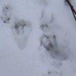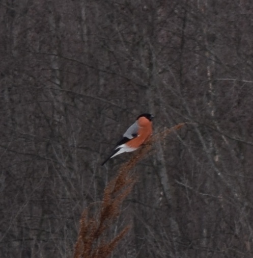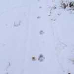 На протяжении всего маршрута встретили несколько стаек снегирей. Обнаружили следы рыси, волка, лосей, кабанов, бобров.