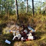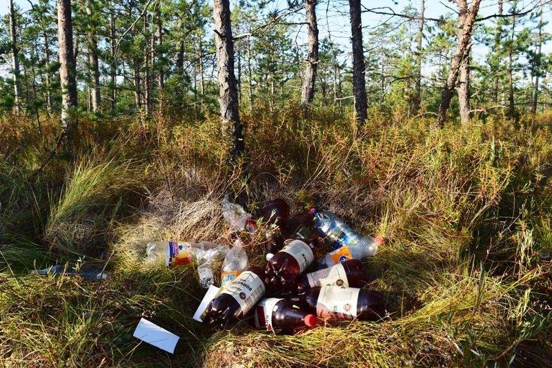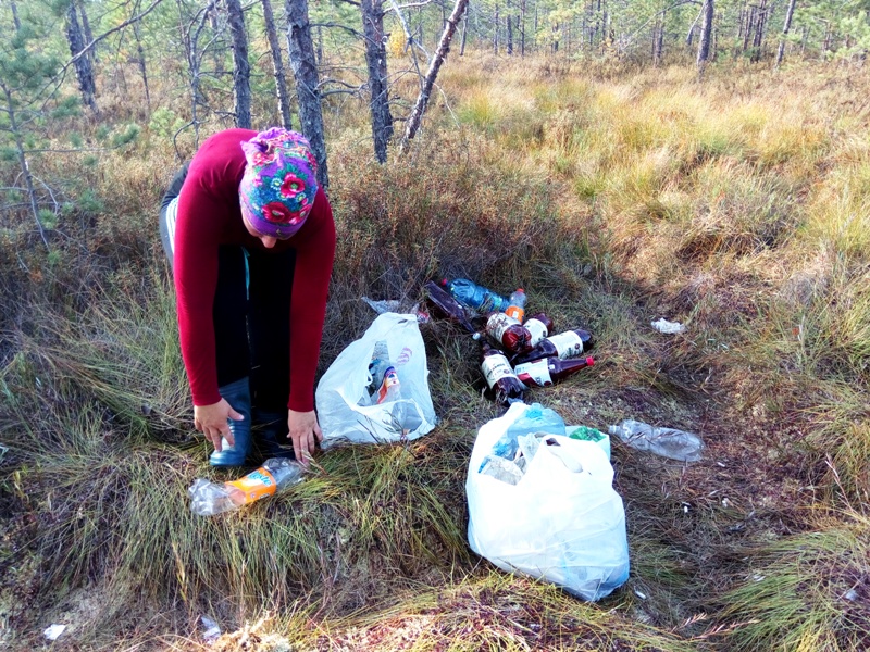 На протяжении всей трассы от Озеран через Припятские Болота, на заездах с трассы в лес, много мусора. На протяжении многих участков с клюквенником разбросан мусор, оставленный сборщиками ягод (пластиковые и стеклянные бутылки, полиэтилен). В посещенных нами местах, мусор был собран и утилизирован. Однако мусора на болотах осталось еще достаточно.